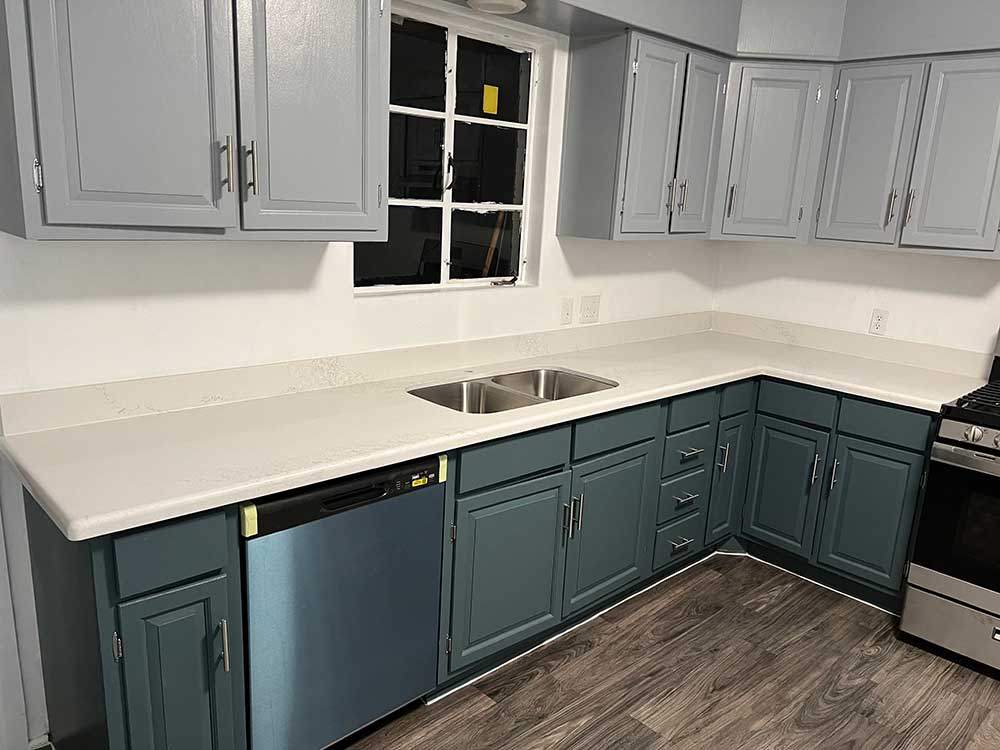 Calcatta Valiente is white quartz with thick grey patterns that resemble veining in marble.